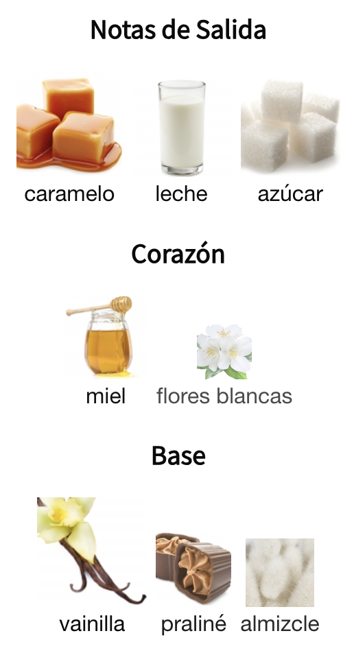 • Notas de salida: Caramelo, leche, azúcar.