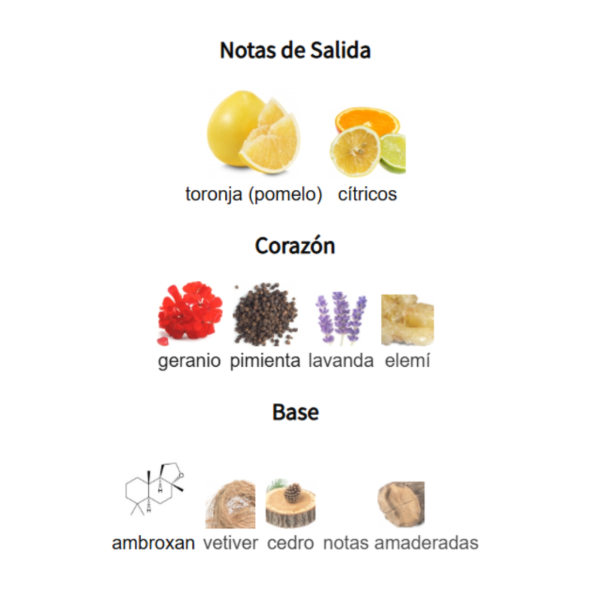 • Notas de Salida son toronja (pomelo) y cítricos.